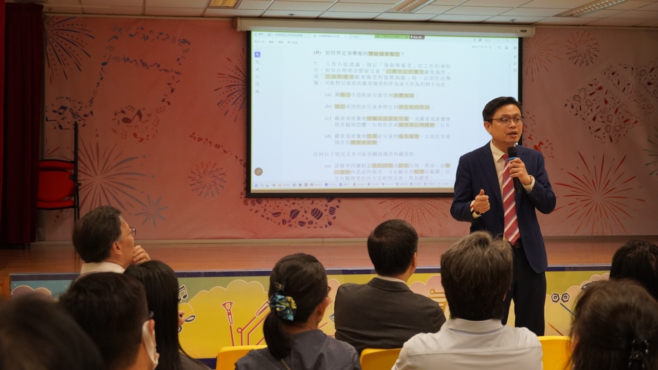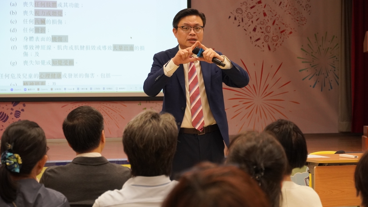 本中心於2026年3月26日舉辦校園法律講座,邀請到蘇文傑律師擔任主講嘉賓,從法律專業角度深入解讀《強制舉報虐待兒童條例》。是次講座獲本中心教職員、學校管理委員會成員及多所夥伴學校校長踴躍參與,反應熱烈。