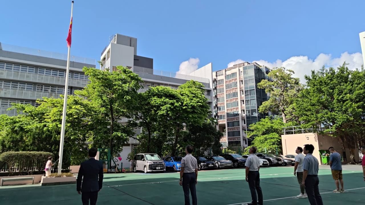9月3日(星期三),校長、副校長及全體老師齊集於學校操場,舉行升國旗儀式,並肅立奏唱國歌。隨後,舉行「中華人民抗日戰爭勝利紀念日」默哀悼念儀式,以追思抗戰期間無數中華兒女英勇抵抗外敵的歷史。