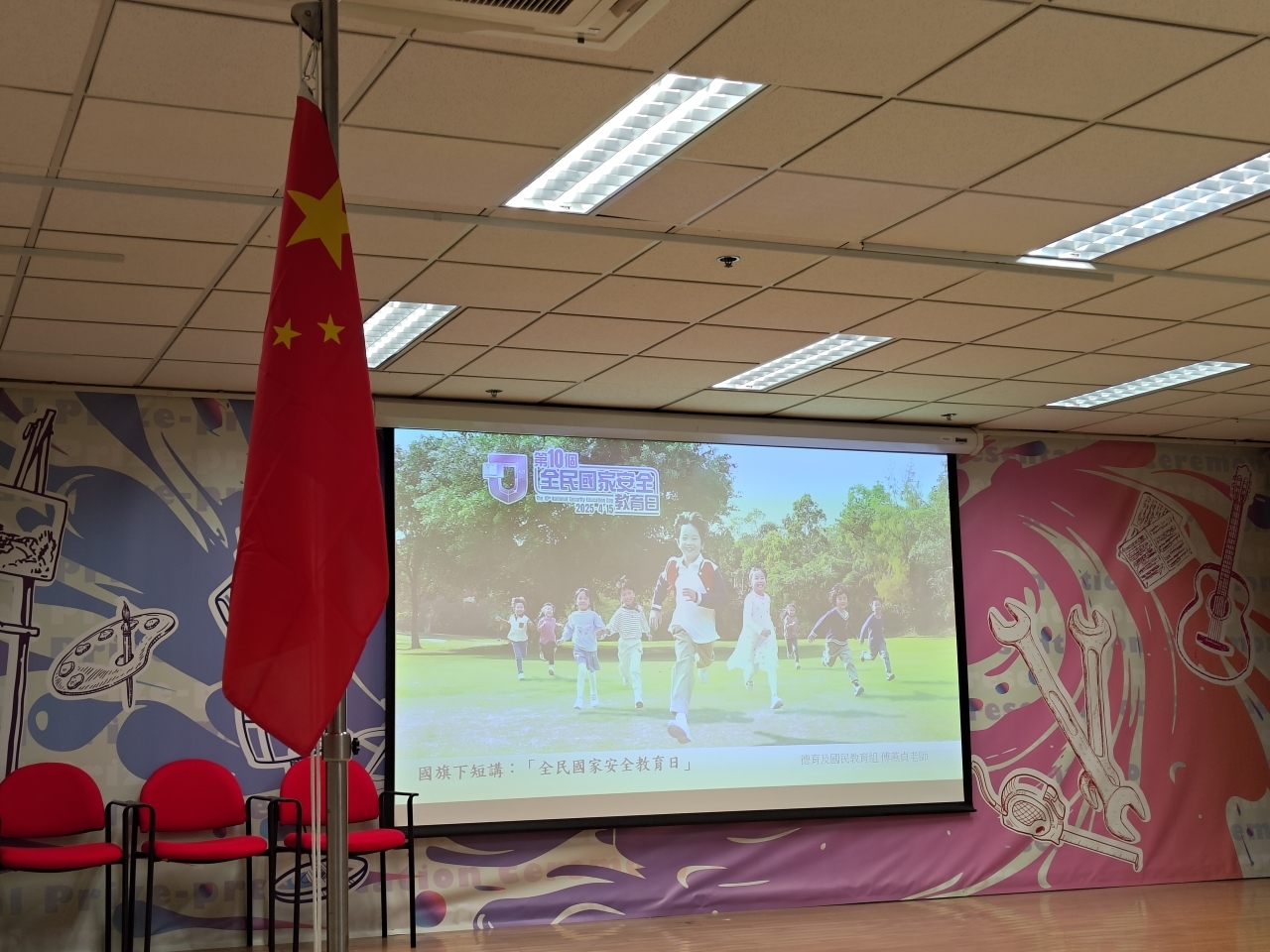 4月15日舉行「全民國家安全教育日」升旗儀式及國旗下講話,聖公會諸聖中學中一學生與本校教職員一同參與儀式,並由德育及國民教育組老師分享「全民國家安全教育日」,讓中一學生認識國家安全的重要。