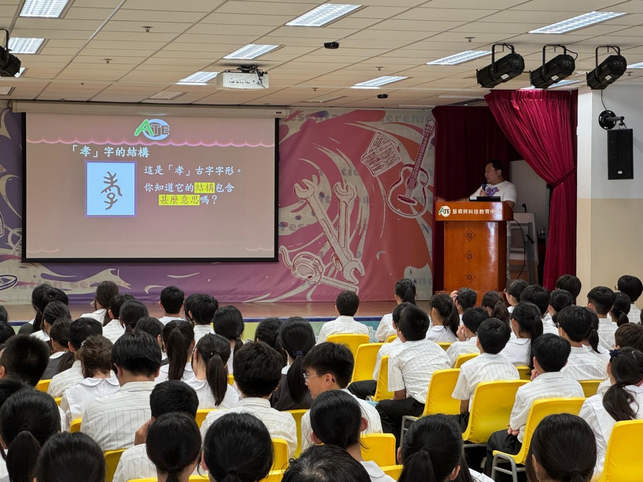 訓導主任蔡迪迦老師亦向學生講解校規,並強調孝道的重要性——本學年的關注重點之一;此外,他亦傳達禁毒教育的訊息,提醒學生遠離不良誘惑,培養正向價值觀。