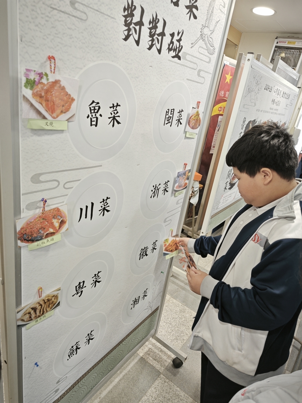 透過展板資訊讓學生認識八大菜糸的特色及代表菜。學生可參與「八大菜系對對碰」的遊戲讓學生有更多互動和培養對中國菜式的興趣!
